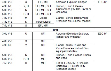 TRUCKS/VANS - Ford Computer System/Scan Tool Application Table
