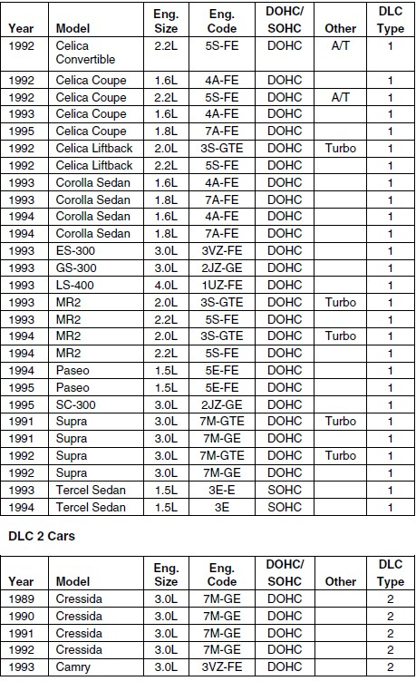 Below is the OBD1 coverage right from the manual which is the same as the coverage checker.