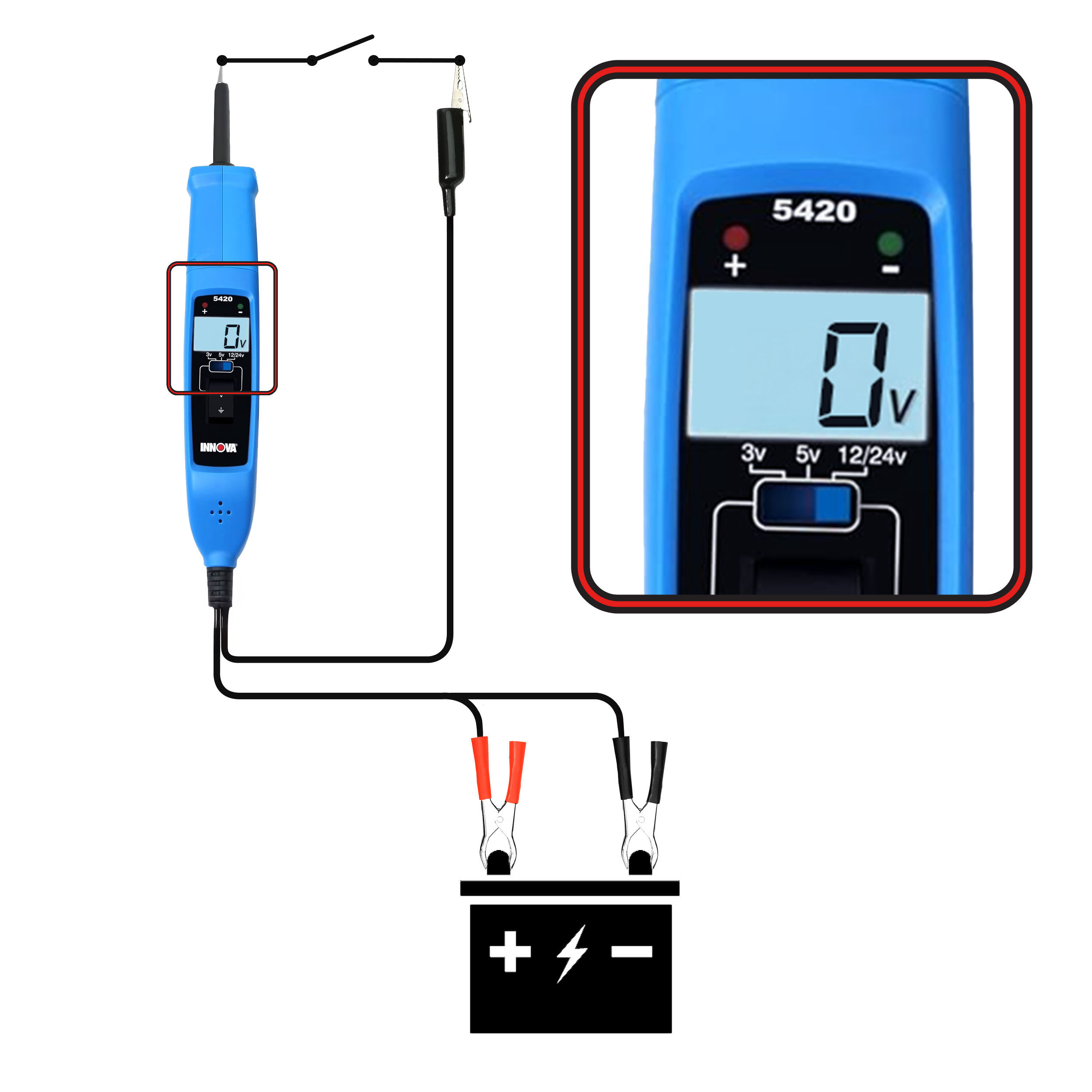- If the probe and the continuity cable are at an open circuit, the 'LCD Display' will show zero voltage or no continuity.